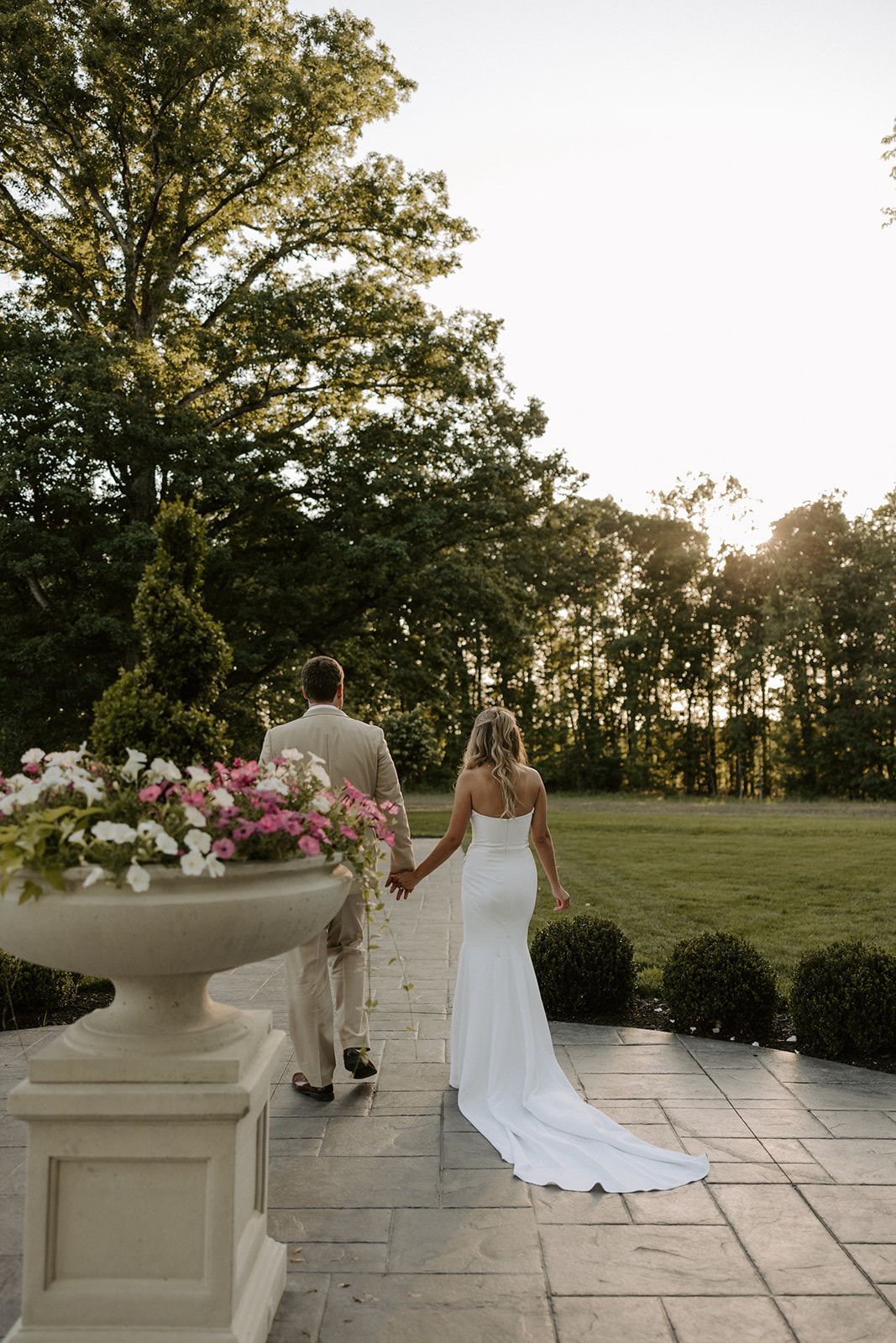 While the newlyweds take photos, the guests can enjoy cocktail hour on the patio around the elegant pool, featuring the grand outdoor stone fireplace.